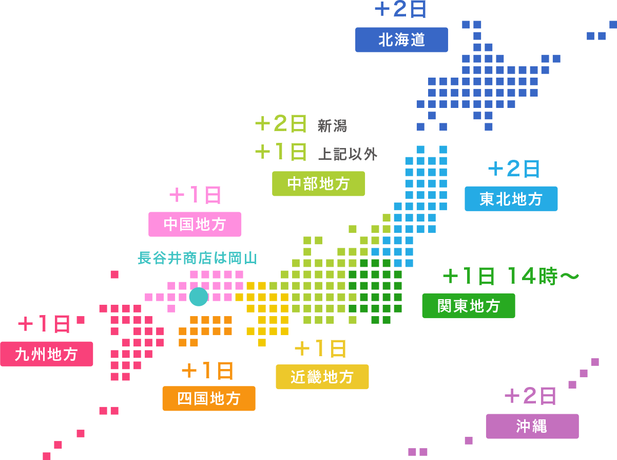 連休・休業日を挟んで<最短2営業日>で注文した場合