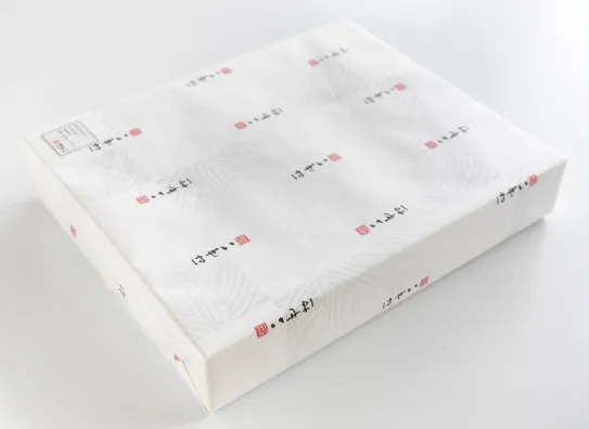 長谷井商店のロゴをあしらった包装紙でお品物を丁寧にお包みいたします。
