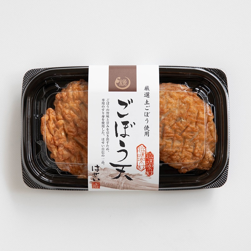 たっぷりと練り込んだ千切り国産ごぼうの力強い旨味とほのかな甘みを、はせい特製のすり身で包み込んだ「ごぼう天」。ひと口かじればシャキッとした歯ごたえと豊かな香りが広がります。炙ればさらに香ばしく、生姜醤油を添えれば、お酒にもご飯にもぴったり。創業以来、変わらぬ美味しさで愛され続ける定番のロングセラーです。ごぼうだけのきんぴら天。新鮮な油を使用しておりますので、冷たいままでお召し上がりいただけます。「選味素材(せんみそざい)はせい特選さつま揚げ」岡山の老舗はせいの味をどうぞご賞味下さいませ。ダンボール箱でのお届けです。