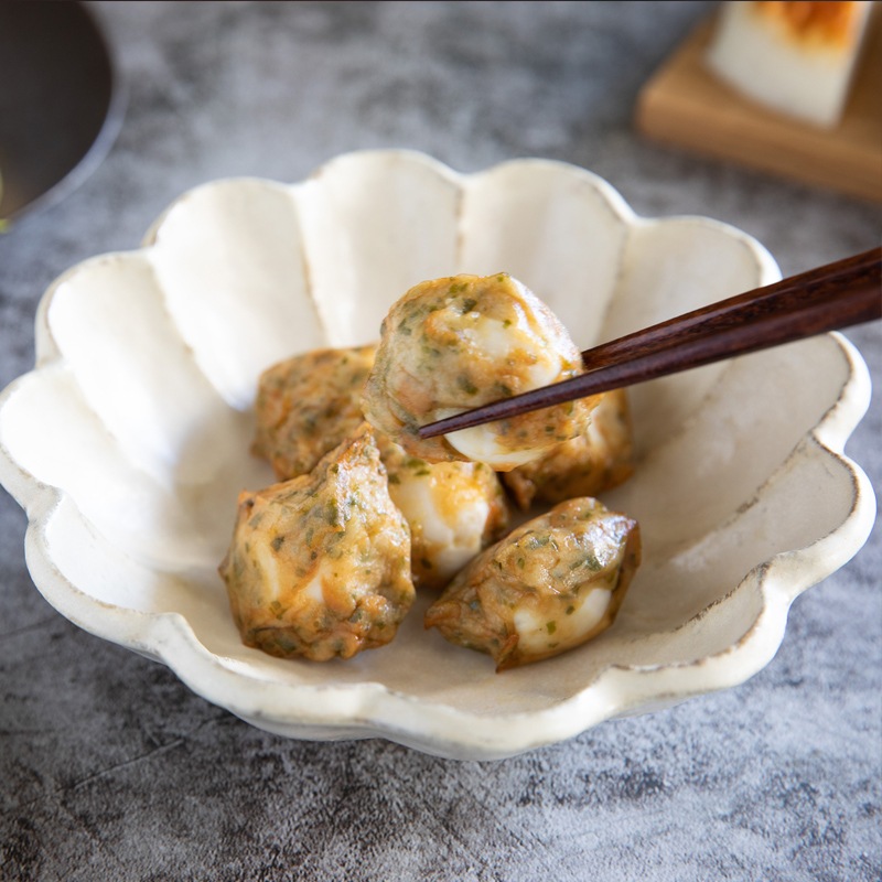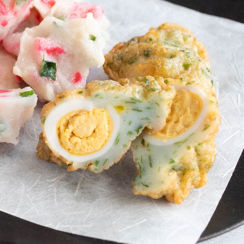 うずら卵を上質なすり身で包み、磯の香りをほんのり纏わせた「うずらたまごの磯辺揚げ」。ゴツゴツとしたすり身の食感と、卵のまろやかな旨味が絶妙に調和する上品な逸品です。そのままおつまみとしても、またおでんや煮物に加えても、料理に豊かな風味と華やかさを添えます。真空パックでおいしさ長持ち。ダンボール箱でのお届けです。