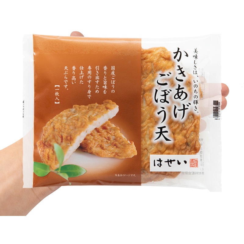 たっぷりと練り込んだ千切り国産ごぼうの力強い旨味とほのかな甘みを、はせい特製のすり身で包み込んだ「かきあげごぼう天」。ひと口かじればシャキッとした歯ごたえと豊かな香りが広がります。炙ればさらに香ばしく、生姜醤油を添えれば、お酒にもご飯にもぴったり。創業以来、変わらぬ美味しさで愛され続ける定番のロングセラーです。うどんや煮物、おでんもおすすめ。ごぼうだけのきんぴら天。新鮮な油を使用しておりますので、冷たいままでお召し上がりいただけます。ダンボール箱でのお届けです。