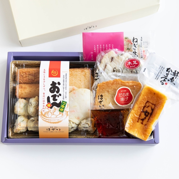 ●<秋冬季限定>おでんつゆ 100ml 1袋<秋冬季限定:8月末~2月末>「はせい」のおでん種つゆ付のご自宅用セットです。ご家庭のおでんが料亭の味に。おでんの美味しさは、練り物で決まります。「選味素材 おでん種(7種14品) つゆ1袋付」におでんにおすすめの練り物と、おでんつゆをもう1袋加えた詰合せ。おでんの具材を増やしても大丈夫です。ダンボール箱でお届けします。親しい方へのお届け物にも。親しい方へのお届け物にも。宅配総菜として、すぐに食べられる”安心”をお届けできます。寒い季節のキャンプご飯に最高。→ 化粧箱入り
