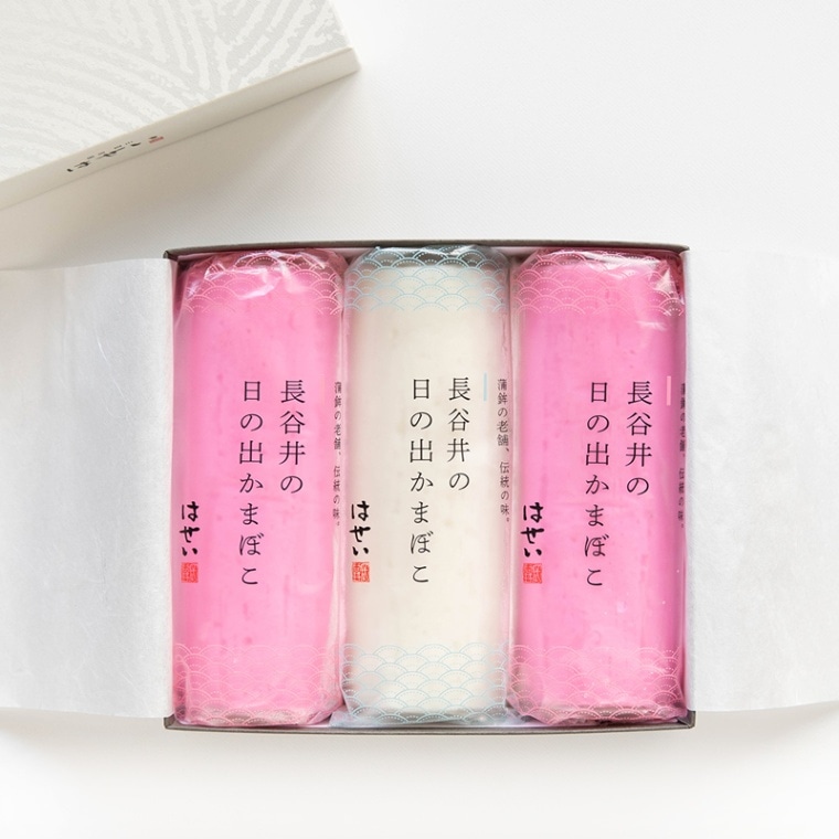 末広がりの形もおめでたい「養老の滝」を写した長寿を願う香ばしい焼かまぼこ。切り分けると筋目が美しい形となります。「はせい」を代表するかまぼこをギフトセットに。化粧箱入り、慶弔両用ギフト。 → 大養老・特上うす板箱入