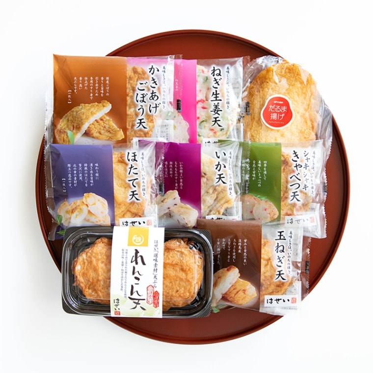 ●かきあげごぼう天 1枚<冬季限定(1月8日~2月末)>定番さつま揚げに、もう一品の贅沢。岡山の老舗練り物専門店「はせい」の定番さつま揚げに、冬季限定の「れんこん天」をプラスした、箱入りの食べ比べセットです。国産れんこんを大ぶりにざく切りでたっぷり練り込み、サクッとした心地よい食感と、ほんのり効かせた唐辛子の風味が楽しめる一品。粘りと甘みが増す冬れんこんならではの味わいです。化粧箱入りで、お誕生日などの贈り物にもおすすめ。